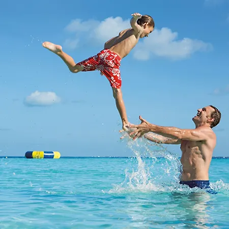 | Aktiviteter Golfbane Dykning Snorkling Kanosejlads Billard-/ poolborde Bordtennis | Spa og afslapning Spa & Wellness center Damprum Massage | Mad/Drikke Restaurant Snackbar ved poolen |